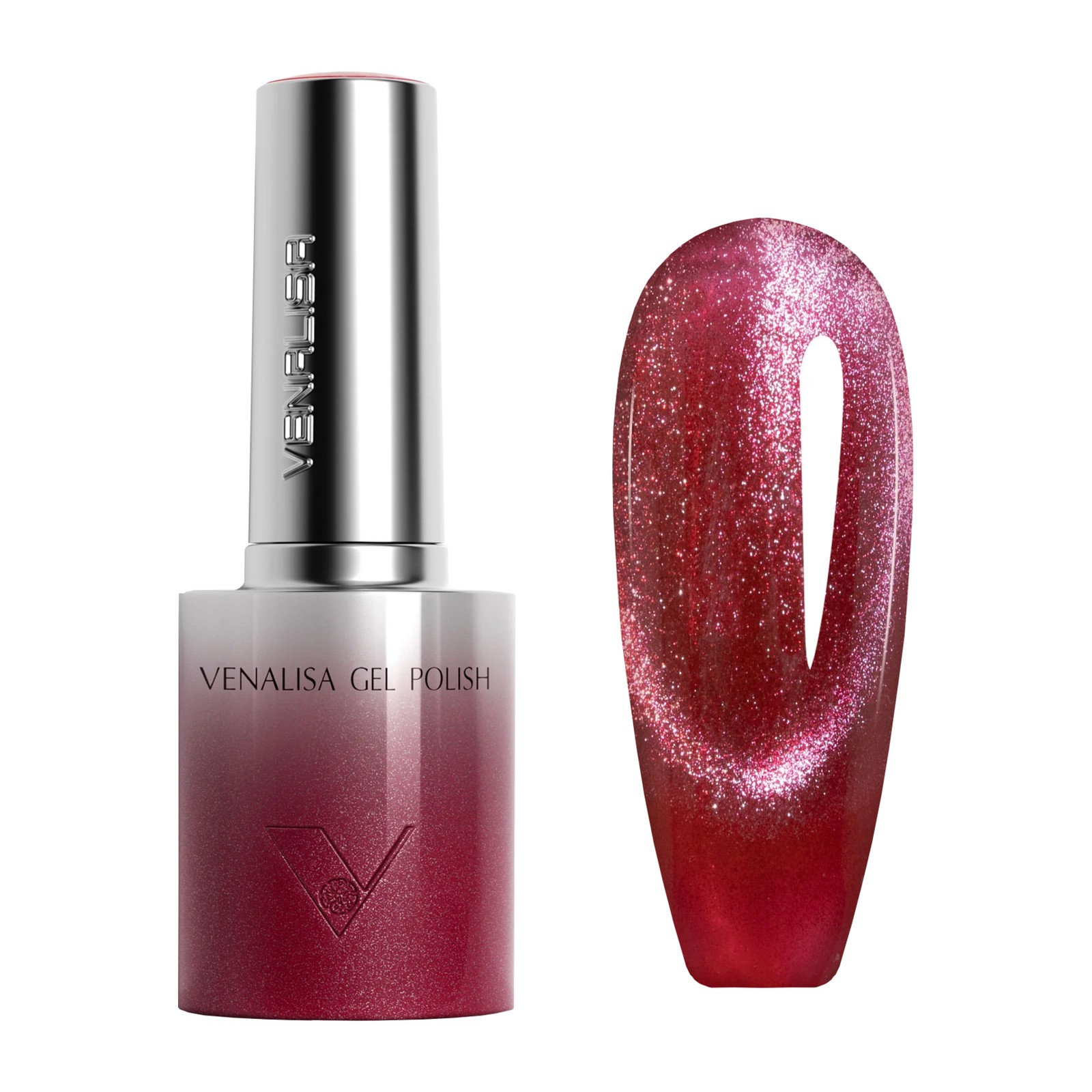 The Venalisa collection comes in a new, elegant and refined design, with a modernized formula, HEMA-free and TPO-free. Venalisa 5626 is a gel polish with a cat-eye effect, notable for its intense shine, flawless coverage and strong pigment, offering resistance for up to 4 weeks. The 10 ml bottle is equipped with a high-quality brush, for easy, uniform and perfect self-leveling application.